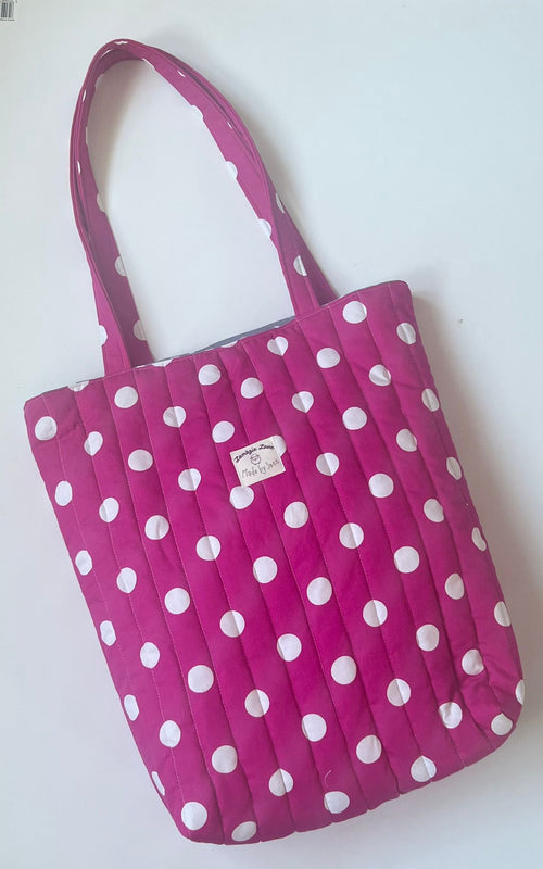Handmade Tote bag cerise pink spot, grey spot lining