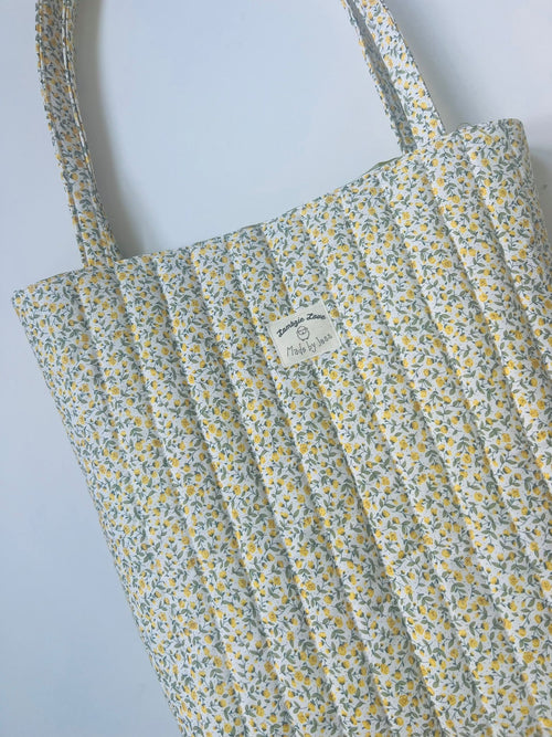 Handmade Tote bag lemon rosebud, apple green gingham lining